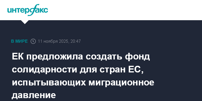 Москва. 11 ноября. INTERFAX.RU - Еврокомиссия предложила создать фонд солидарности для удовлетворения потребностей государств-членов, испытывающих миграционное давление.
