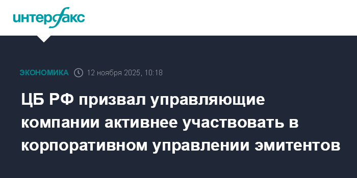 ЦБ РФ призвал управляющие компании активнее участвовать в корпоративном управлении эмитентов