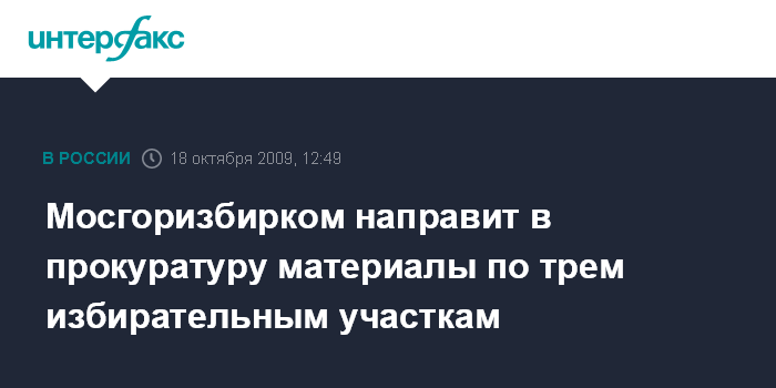 Москва. 18 октября. INTERFAX.RU - Мосгоризбирком направит в прокуратуру материалы по трем избирательным участкам, где проходило голосование за кандидатов в депутаты Мосгордумы и, судя по данным СМИ, отмечены нарушения. Как сообщил "Интерфаксу" председатель Мосгоризбиркома Валентин Горбунов в воскресенье, такое решение принято на заседании городской комиссии.