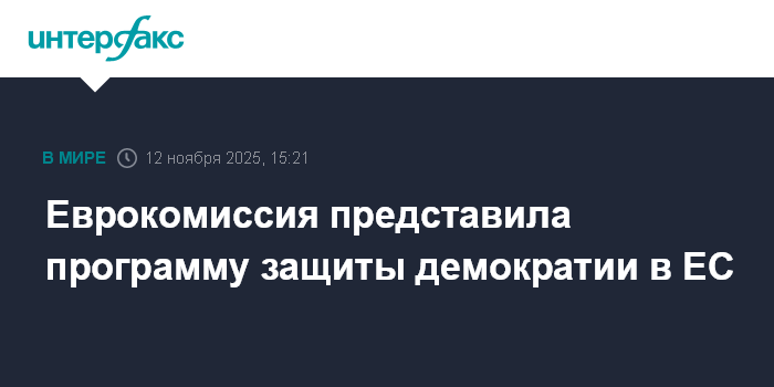 Москва. 12 ноября. INTERFAX.RU - Еврокомиссия (ЕК) представила в среду программу "Европейский щит демократии", в которой изложен ряд мер "по укреплению и защите демократии" в ЕС.