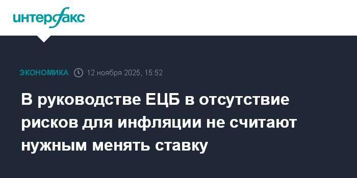В руководстве ЕЦБ в отсутствие рисков для инфляции не считают нужным менять ставку