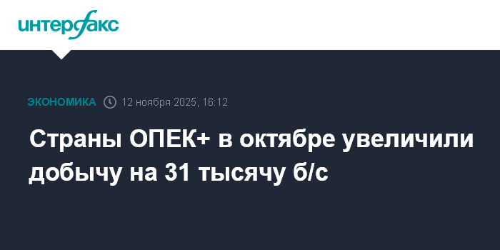 Страны ОПЕК+ в октябре увеличили добычу на 31 тысячу б/с