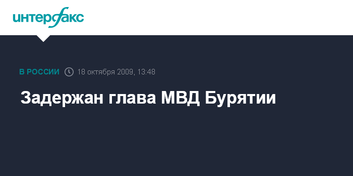 Москва. 18 октября. INTERFAX.RU - В Бурятии задержан глава МВД республики Виктор Сюсюра, передал в воскресенье телеканал "Вести".