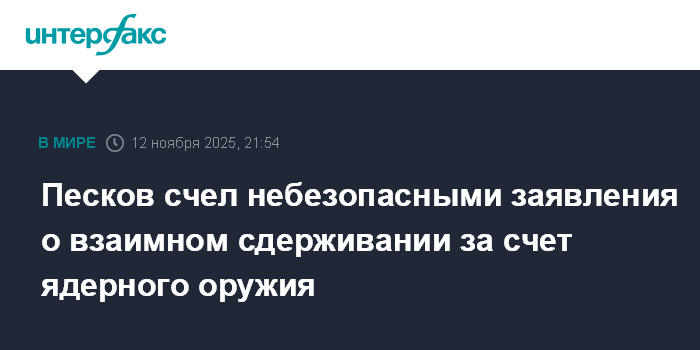 Песков счел небезопасными заявления о взаимном сдерживании за счет ядерного оружия