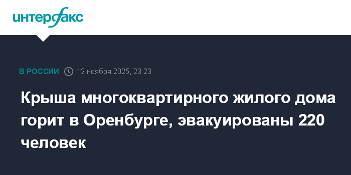 Крыша многоквартирного жилого дома горит в Оренбурге, эвакуированы 220 человек