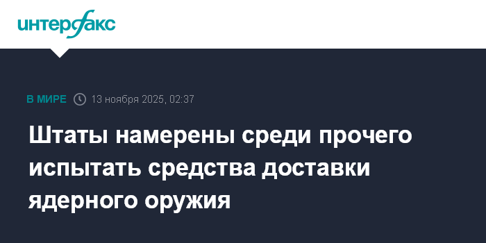 Москва. 13 ноября. INTERFAX.RU - Президент США Дональд Трамп, говоря о возобновлении ядерных испытаний, имел в виду в том числе испытания средств доставки, сообщил госсекретарь США Марко Рубио.