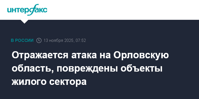 Отражается атака на Орловскую область, повреждены объекты жилого сектора