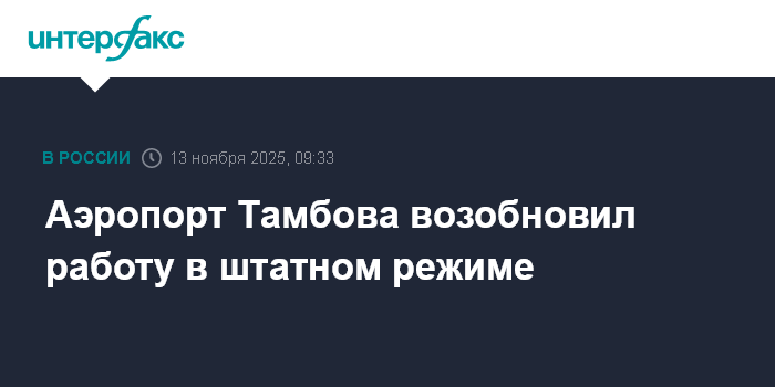 Москва. 13 ноября. INTERFAX.RU - Аэропорт Тамбова ("Донское") вновь принимает и отправляет рейсы, сообщил официальный представитель Росавиации Артем Кореняко.