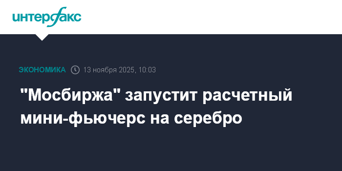 Москва. 13 ноября. INTERFAX.RU - "Московская биржа" 20 ноября начнет торги расчетными мини-фьючерсами на серебро, сообщила площадка.