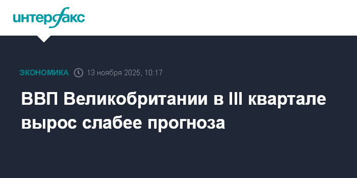 Москва. 13 ноября. INTERFAX.RU - Экономика Великобритании в третьем квартале 2025 года выросла на 0,1% по сравнению с предыдущими тремя месяцами, по предварительным данным Национального статистического управления ONS.