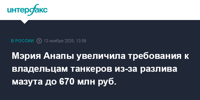 Мэрия Анапы увеличила требования к владельцам танкеров из-за разлива мазута до 670 млн руб.