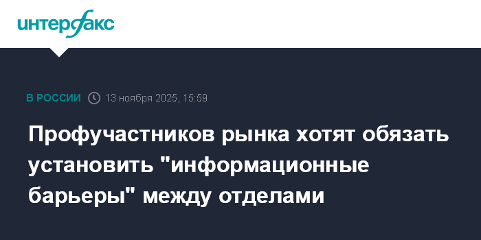 Профучастников рынка хотят обязать установить "информационные барьеры" между отделами