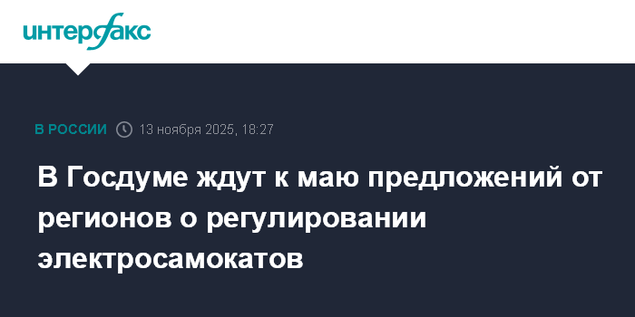 "Была создана рабочая группа, разработан законопроект. Сейчас принято решение изучить, что думают субъекты РФ на эту тему, поскольку они отвечают за транспортное обслуживание населения и за безопасность на дорогах. В мае 2026 года мы получим информацию от регионов. До этого не хотели бы на федеральном уровне как-то законом регулировать эти вопросы", - сказал он.
