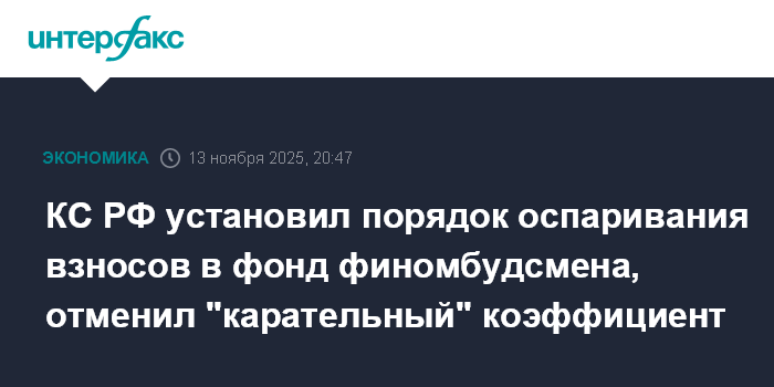 КС РФ установил порядок оспаривания взносов в фонд финомбудсмена, отменил "карательный" коэффициент