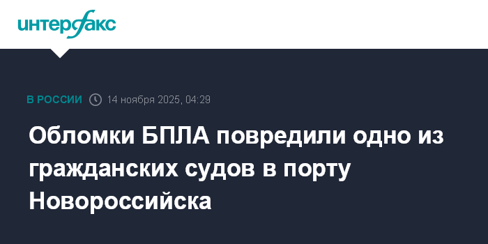 Москва. 14 ноября. INTERFAX.RU - В результате атаки беспилотников на Новороссийск одно из гражданских судов в порту повреждено обломками БПЛА, пострадали трое из экипажа, сообщает оперштаб Краснодарского края.
