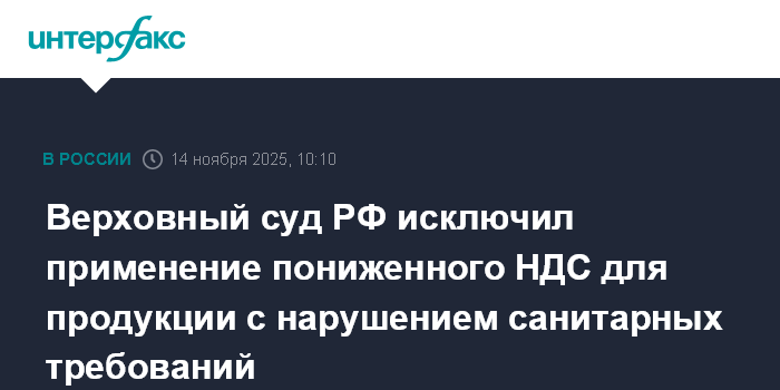 Верховный суд РФ исключил применение пониженного НДС для продукции с нарушением санитарных требований