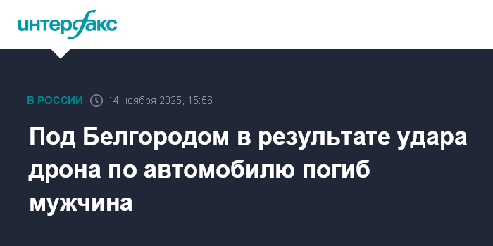 Москва. 14 ноября. INTERFAX.RU - В селе Ясные Зори Белгородского округа в результате удара дрона по автомобилю погиб мужчина, сообщил губернатор Белгородской области Вячеслав Гладков.