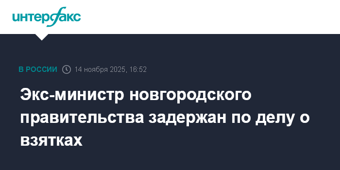 Экс-министр новгородского правительства задержан по делу о взятках