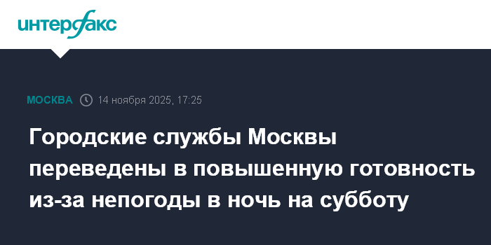 Городские службы Москвы переведены в повышенную готовность из-за непогоды в ночь на субботу