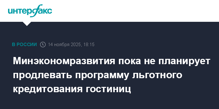Минэкономразвития пока не планирует продлевать программу льготного кредитования гостиниц