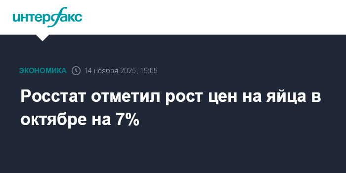 Москва. 14 ноября. INTERFAX.RU - В России в октябре яйца подорожали к сентябрю на 6,9%, сообщил Росстат.