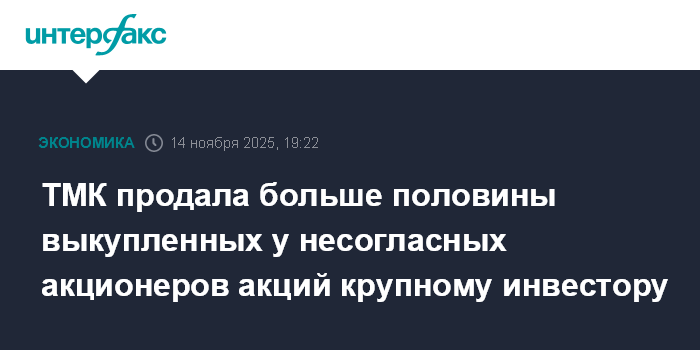 ТМК продала больше половины выкупленных у несогласных акционеров акций крупному инвестору