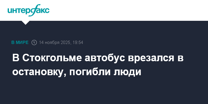 Москва. 14 ноября. INTERFAX.RU - В центре Стокгольма двухэтажный автобус врезался в остановку общественного транспорта на бульваре Вальгаллы в районе Эстермальм, есть погибшие и пострадавшие, заявила представитель шведской полиции, не называя точных чисел. По данным Aftonbladet, погибли трое и есть тяжелораненые.
