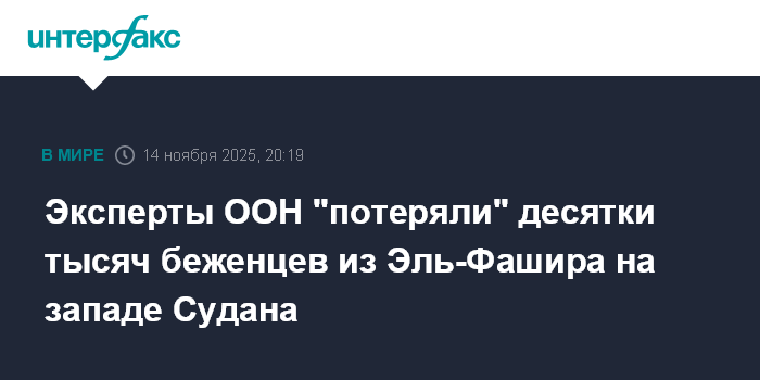 Москва. 14 ноября. INTERFAX.RU - В Управлении Верховного комиссара ООН по делам беженцев (УВКБ ООН) заявили, что десятки тысяч человек, вынужденно покинувших город Эль-Фашир на западе Судана из-за его захвата Силами быстрого реагирования (СБР), сейчас не дают о себе знать. Об этом сообщают западные СМИ.