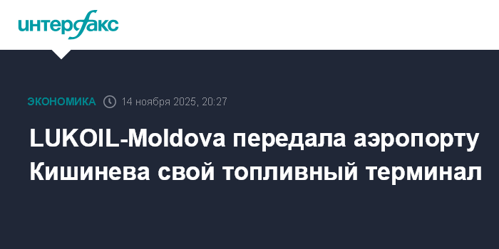 "Аэропорт Кишинева получил в бесплатное пользование топливный терминал компании "ЛУКОЙЛ". Договор о принятии в управление активов аэропорта на безвозмездной основе стороны подписали 12 ноября, а на следующий день официально оформили передачу имущества. Это соглашение позволит аэропорту обеспечить поставку керосина и представляет собой экстренное решение для обеспечения стабильности снабжения самолетов, учитывая, что с 21 ноября "ЛУКОЙЛ" не сможет поставлять нефтепродукты и эксплуатировать заправки из-за санкций США", - написал Жунгиету.