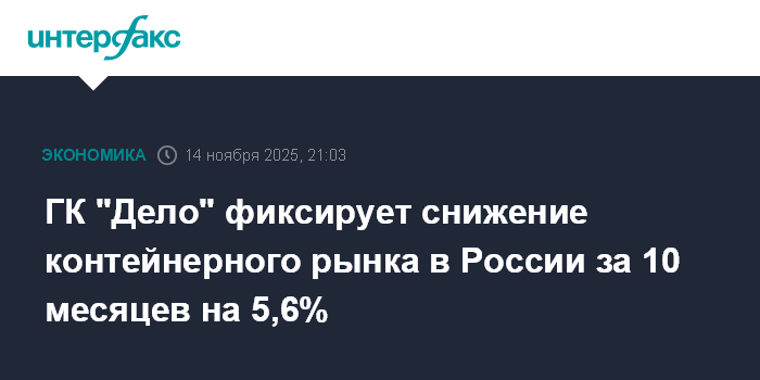 Москва. 14 ноября. INTERFAX.RU - Российский контейнерный рынок в январе-октябре 2025 года сократился на 5,6% в годовом измерении, до 6,2 млн TEU, подсчитали аналитики группы компаний "Дело".