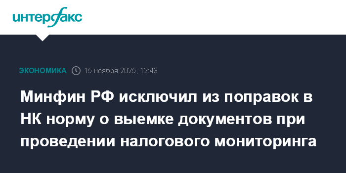 Минфин РФ исключил из поправок в НК норму о выемке документов при проведении налогового мониторинга