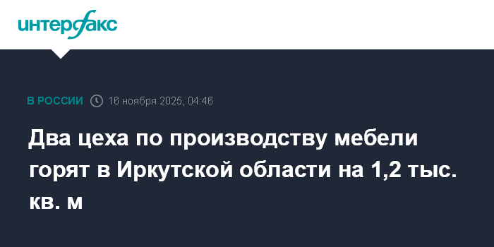 Москва. 16 ноября. INTERFAX.RU - В городе Усолье-Сибирское Иркутской области горят два цеха по производству мягкой мебели, сообщает региональный главк МЧС России.