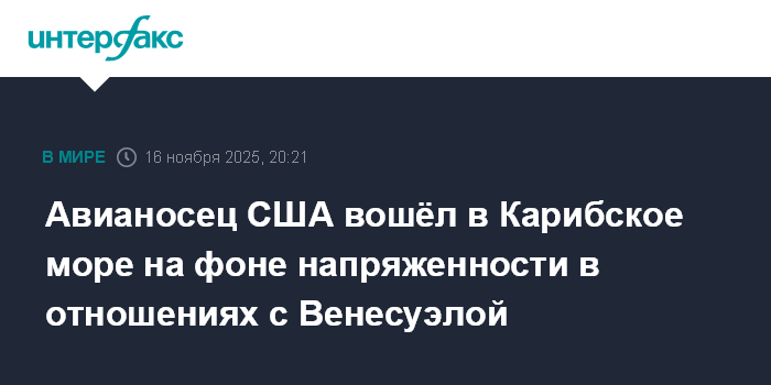 Ранее сообщалось, что авианосная ударная группа во главе с атомным авианосцем USS Gerald Ford, перенаправленная из Средиземного моря к Латинской Америке, 11 ноября вошла в зону ответственности американского Южного командования. В его зону входит вся Латинская Америка с омывающими ее водами Атлантики и Тихого океана, в том числе Карибское море. В состав авианосной группы входят также три ракетных эсминца. Авианосец несет 48 боевых истребителей F/A-18E Super Hornet.