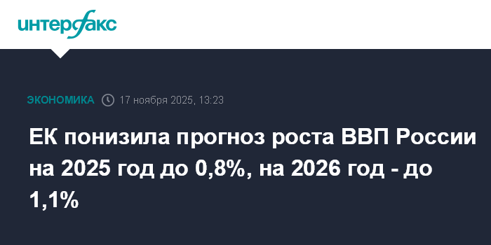 ЕК понизила прогноз роста ВВП России на 2025 год до 0,8%, на 2026 год - до 1,1%