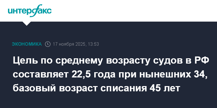 Цель по среднему возрасту судов в РФ составляет 22,5 года при нынешних 34, базовый возраст списания 45 лет
