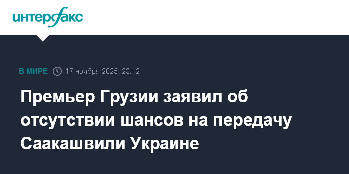 Москва. 17 ноября. INTERFAX.RU - Глава грузинского правительства Ираклий Кобахидзе исключил возможность передачи Украине осужденного экс-президента Грузии Михаила Саакашвили.