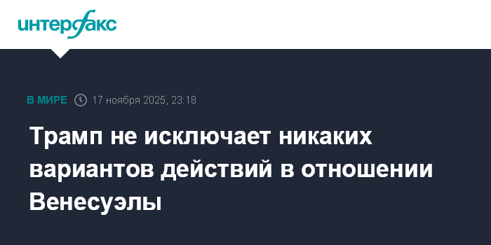 Москва. 17 ноября. INTERFAX.RU - Президент США Дональд Трамп в понедельник заявил, что рассматривает все варианты действий в отношении Венесуэлы.