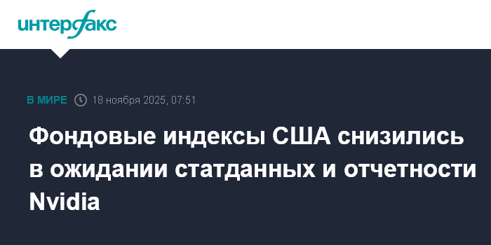 Фондовые индексы США снизились в ожидании статданных и отчетности Nvidia