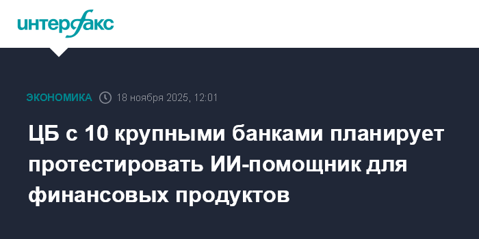 ЦБ с 10 крупными банками планирует протестировать ИИ-помощник для финансовых продуктов