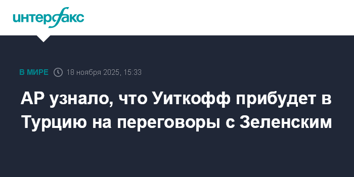 "Турецкий чиновник сказал AP, что Уиткофф присоединится к Зеленскому в Турции", - информирует агентство.