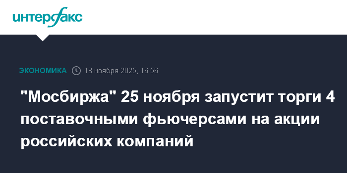 "Мосбиржа" 25 ноября запустит торги 4 поставочными фьючерсами на акции российских компаний