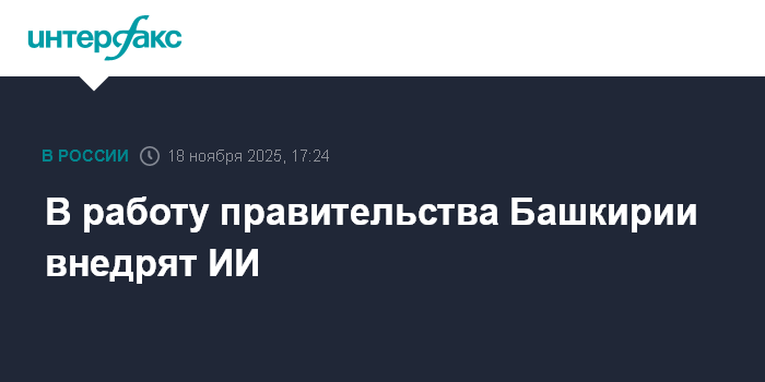Москва. 18 ноября. INTERFAX.RU - В Башкирии усилят работу по внедрению искусственного интеллекта в систему государственного и муниципального управления, сообщил в Telegram премьер-министр республики Андрей Назаров.