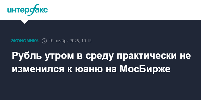 Москва. 19 ноября. INTERFAX.RU - Китайский юань лишь слегка снизился на Московской бирже утром в среду; рубль относительно стабилен в начале биржевых торгов 19 ноября на фоне сформировавшегося баланса между спросом и предложением.