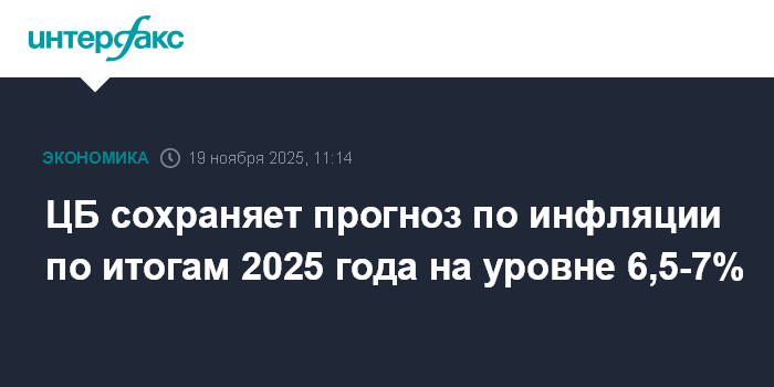 ЦБ сохраняет прогноз по инфляции по итогам 2025 года на уровне 6,5-7%