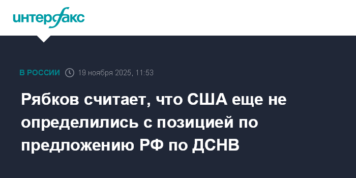Москва. 19 ноября. INTERFAX.RU - В Вашингтоне еще не определились с позицией по поводу предложения Москвы по Договору о стратегических наступательных вооружениях (ДСНВ), заявил в среду замглавы МИД РФ Сергей Рябков.