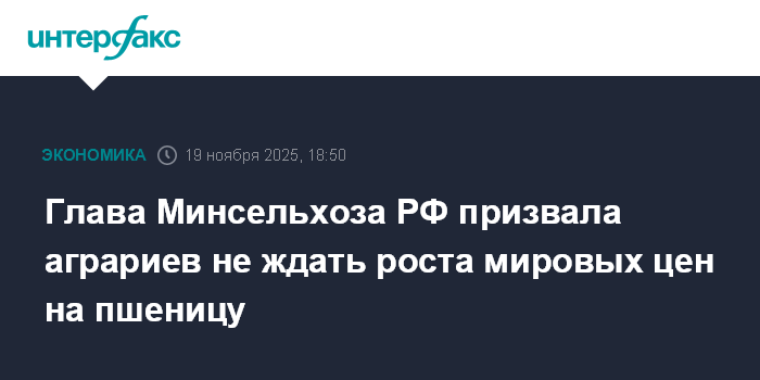 Глава Минсельхоза РФ призвала аграриев не ждать роста мировых цен на пшеницу