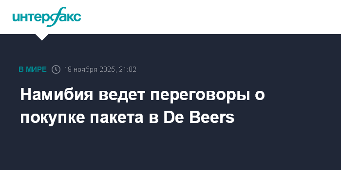 Москва. 19 ноября. INTERFAX.RU - Намибия присоединилась к числу южноафриканских стран - претендентов на долю в алмазодобывающей De Beers, которую в рамках своей реструктуризации намерена продать корпорация Anglo American.