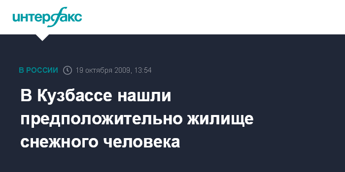 Кемерово. 19 октября. INTERFAX.RU - В Кузбассе участники двухдневной экспедиции по поиску снежного человека, возможно, нашли его временное жилище, сообщила в понедельник пресс-служба обладминистрации.