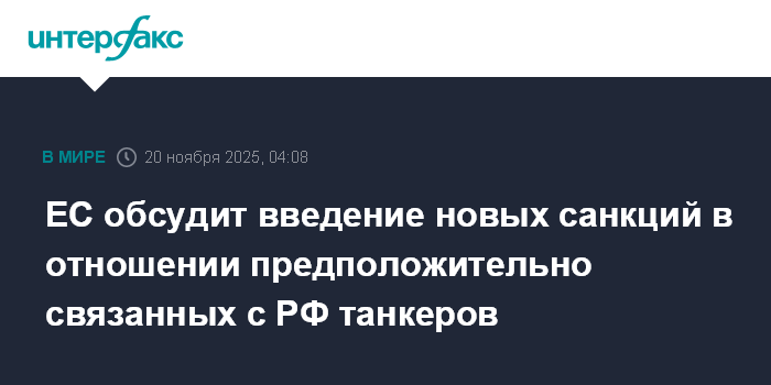 ЕС обсудит введение новых санкций в отношении предположительно связанных с РФ танкеров