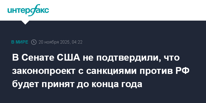 В Сенате США не подтвердили, что законопроект с санкциями против РФ будет принят до конца года